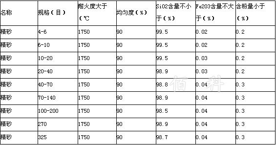 精制石英砂:SiO2≥99-99.5%Fe2O3≤0.02-0.015%,精選優(yōu)質(zhì)礦石進(jìn)行復(fù)雜加工而成。粒度范圍用5-480目,可按用戶要求生產(chǎn),外觀白色或結(jié)晶狀。主要用途:高級(jí)玻璃,玻璃制品,耐火材料,熔煉石類,精密鑄造,砂輪磨材等。精制石英砂是重要的工業(yè)礦物原料,廣泛用于玻璃、鑄造、陶瓷及耐火材料、冶金、建筑、化工、塑料、橡膠、磨料等工業(yè)。